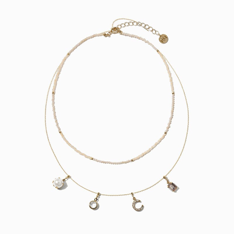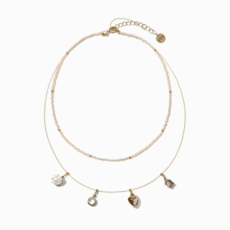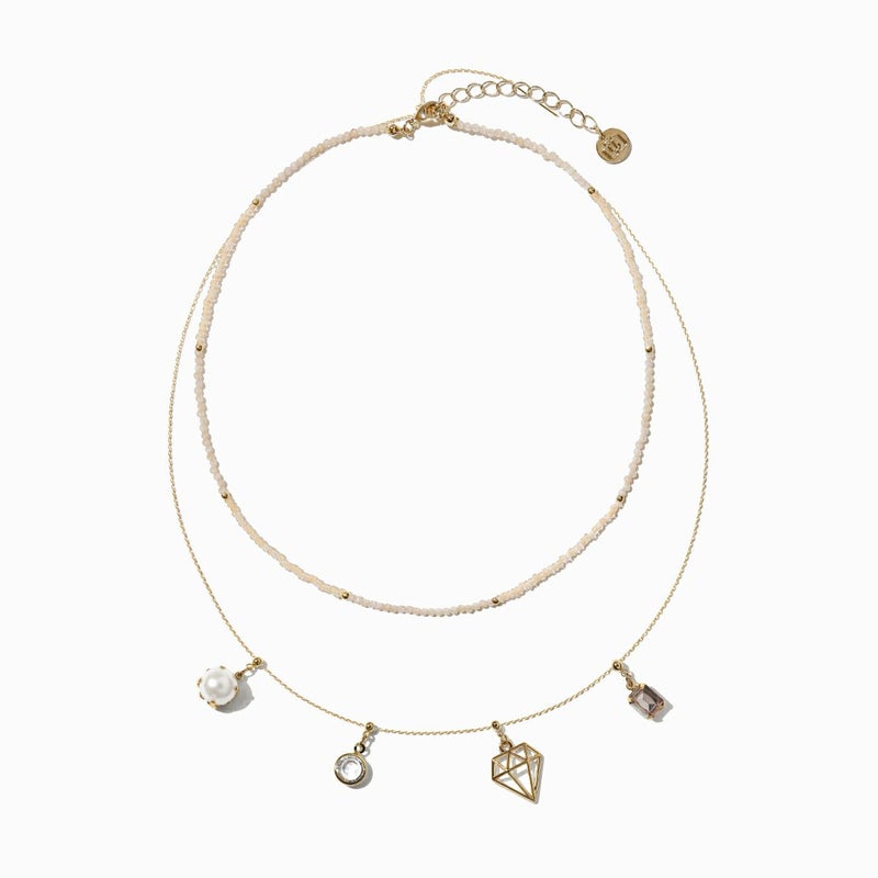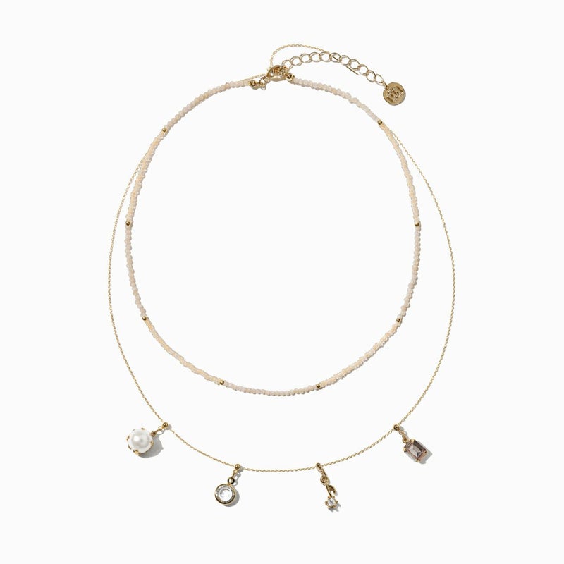 ビーズとチェーンの2連デザインが可愛いネックレス。