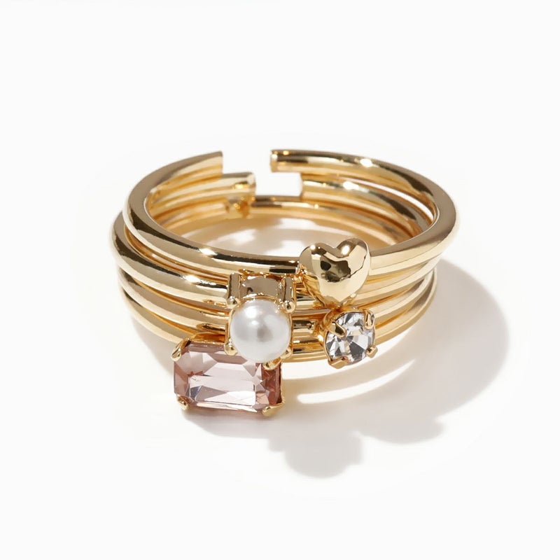 ハート・パール・ビジュー・カラーストーンの4本セットリング。